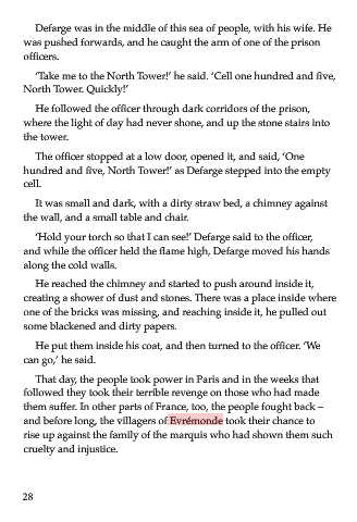 ‘Hold your torch so that I can see!’ Defarge said to the offi cer,