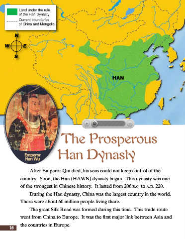 country. Soon, the Han (HAWN) dynasty began. This dynasty was one